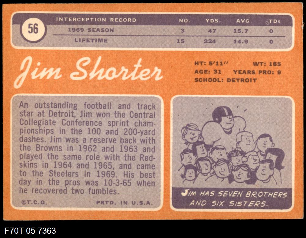 | 1970 Topps #56 Jim Shorter | 5 - EX | Front | Back |