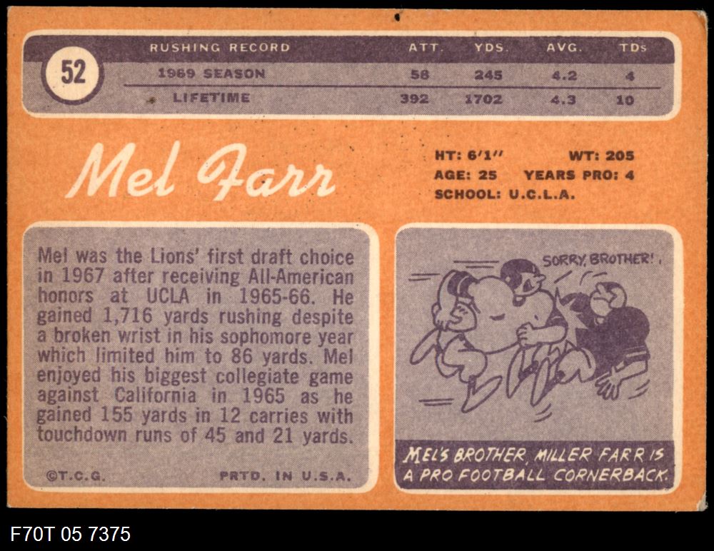 | 1970 Topps #52 Mel Farr | 4 - VG/EX | Front | Back |
