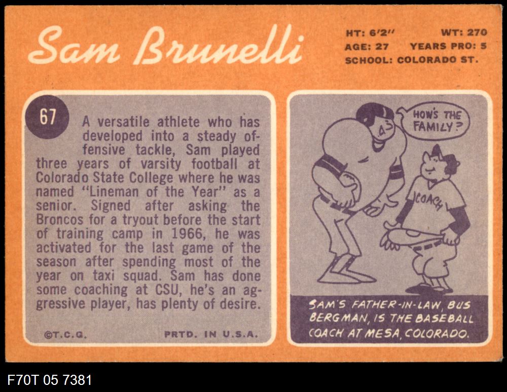 | 1970 Topps #67 Sam Brunelli | 5 - EX | Front | Back |