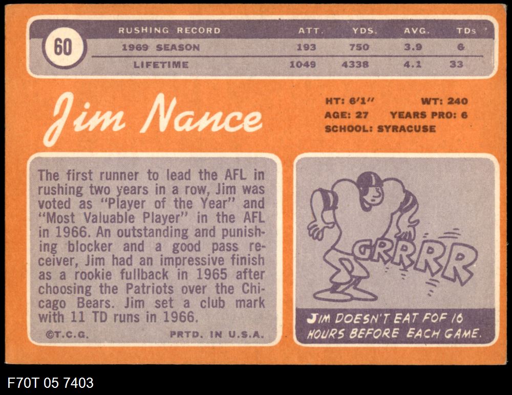 | 1970 Topps #60 Jim Nance | 3 - VG | Front | Back |