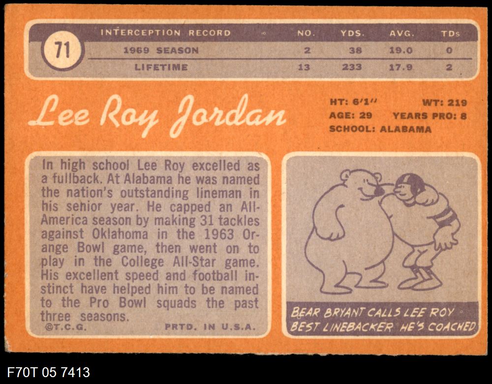 | 1970 Topps #71 Lee Roy Jordan | 5 - EX | Front | Back |