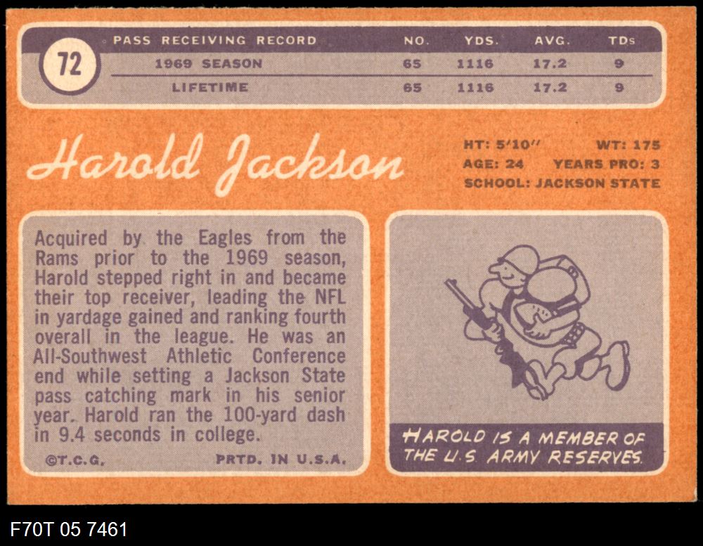 | 1970 Topps #72 Harold Jackson | 5 - EX | Front | Back |
