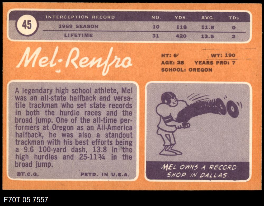 | 1970 Topps #45 Mel Renfro | 5 - EX | Front | Back |
