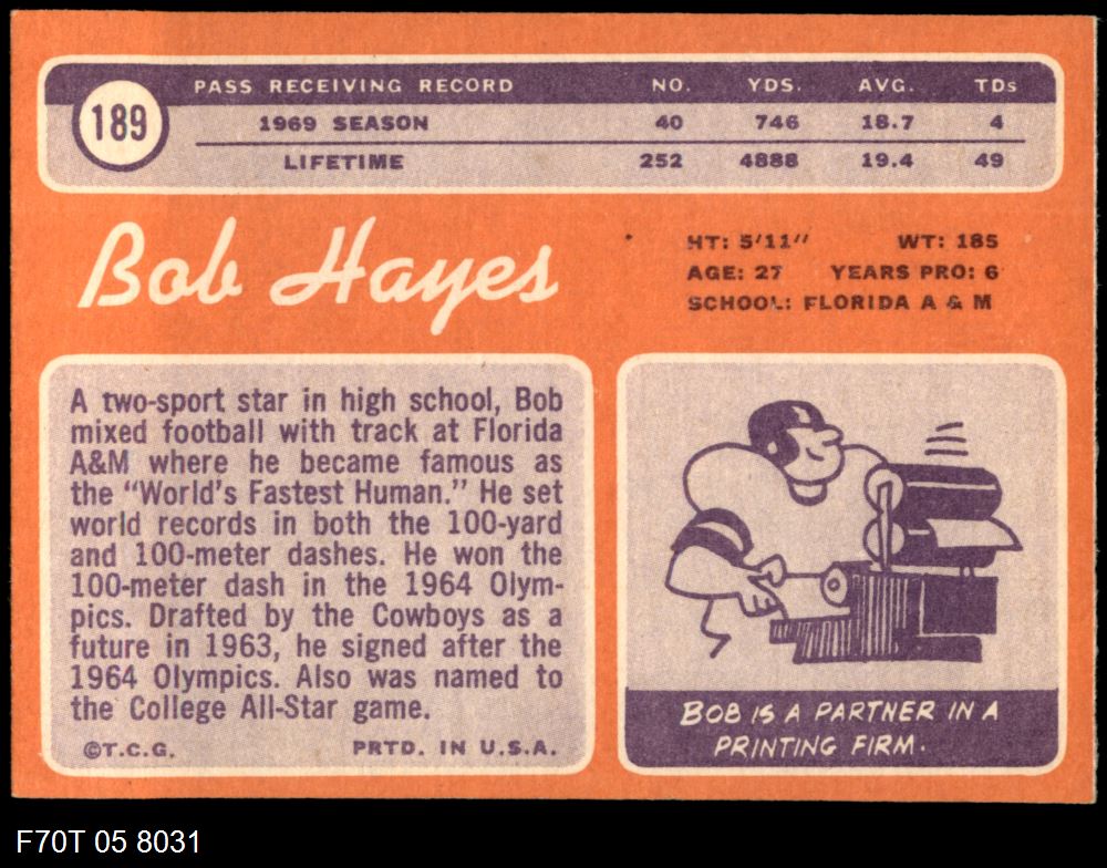 | 1970 Topps #189 Bob Hayes | 6 - EX/MT | Front | Back |