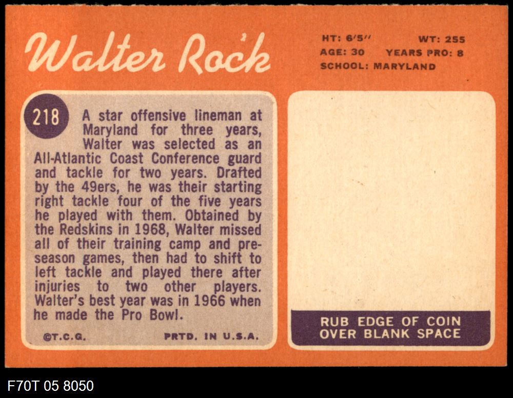 | 1970 Topps #218 Walter Rock | 5 - EX | Front | Back |