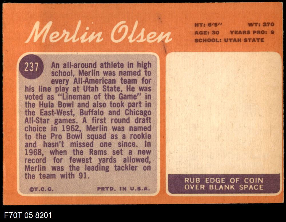 | 1970 Topps #237 Merlin Olsen | 5 - EX | Front | Back |