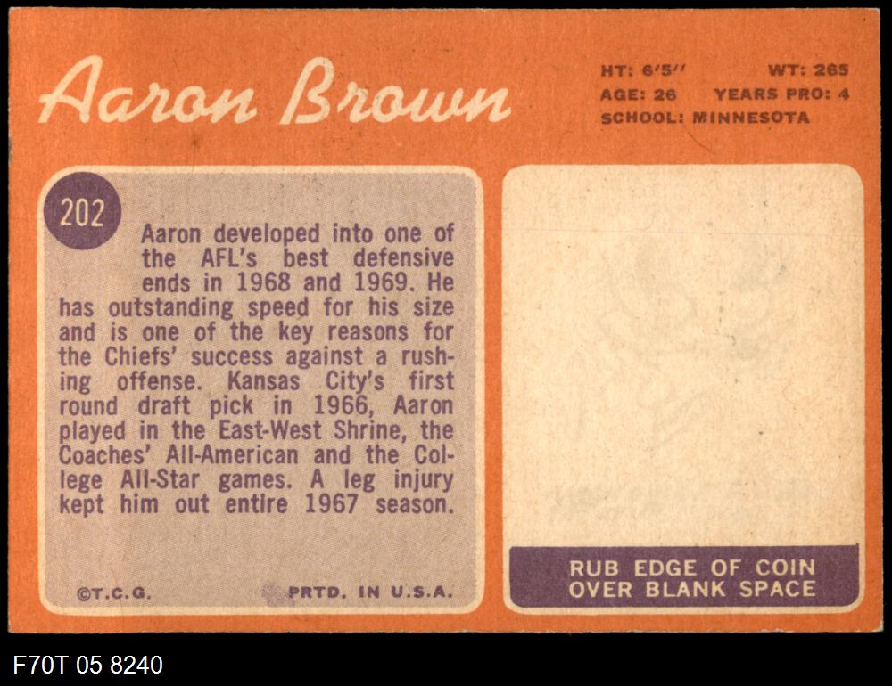 | 1970 Topps #202 Aaron Brown | 5 - EX | Front | Back |