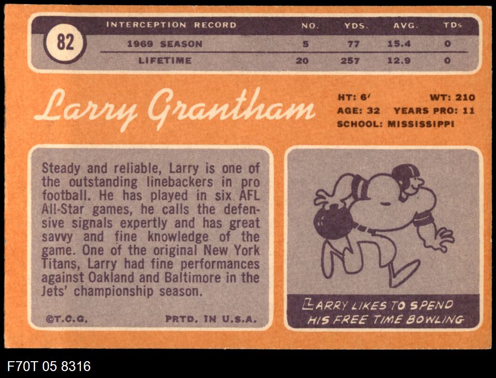 | 1970 Topps #82 Larry Grantham | 5 - EX | Front | Back |
