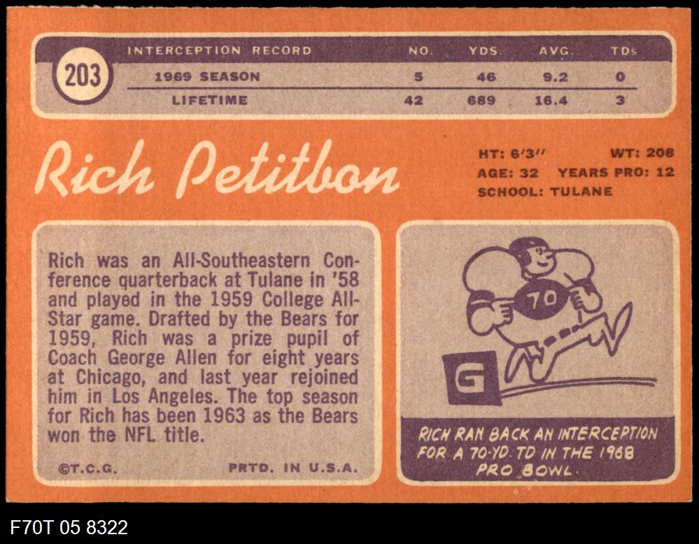 | 1970 Topps #203 Richie Petitbon | 5 - EX | Front | Back |