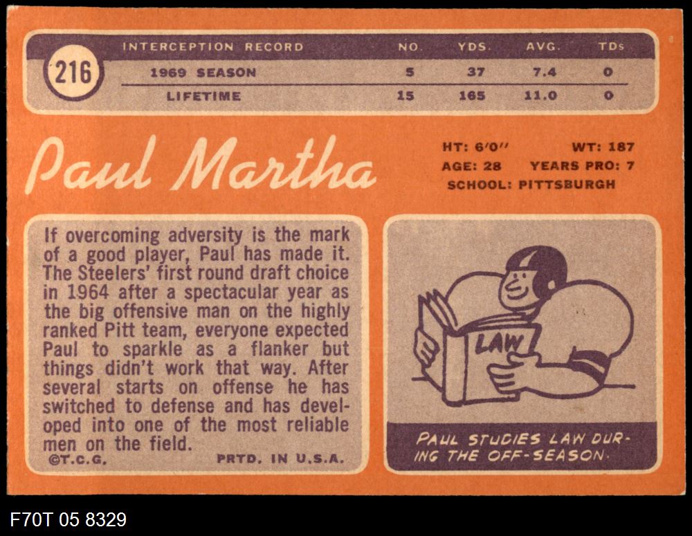 | 1970 Topps #216 Paul Martha | 5 - EX | Front | Back |