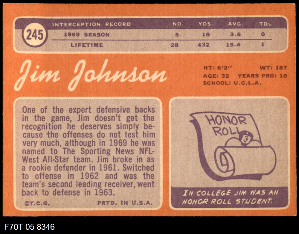 | 1970 Topps #245 Jimmy Johnson | 5 - EX | Front | Back |