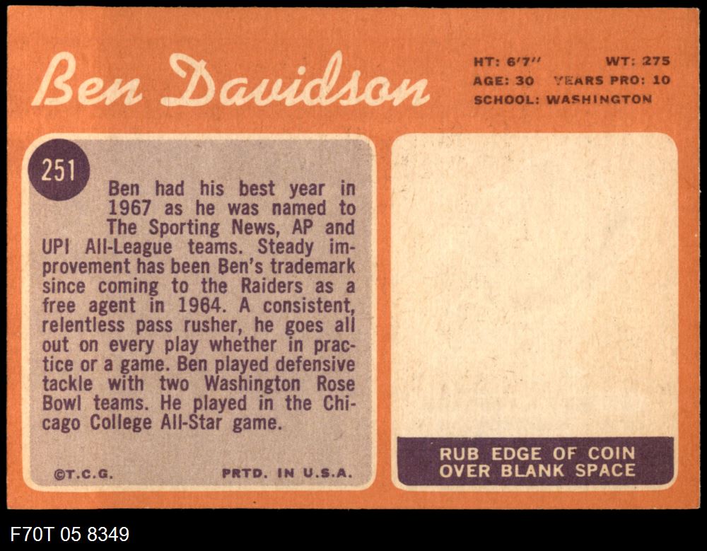 | 1970 Topps #251 Ben Davidson | 5 - EX | Front | Back |