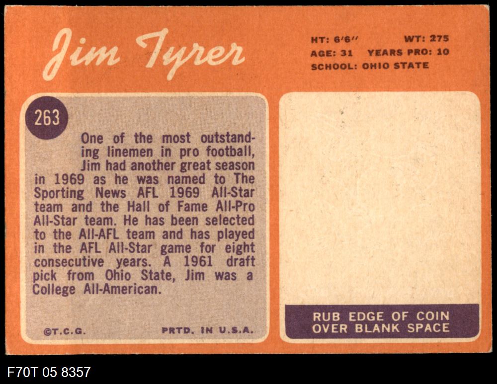 | 1970 Topps #263 Jim Tyrer | 5 - EX | Front | Back |