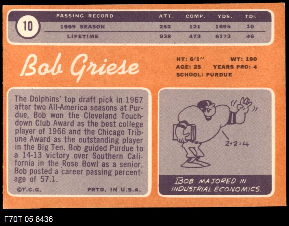 | 1970 Topps #10 Bob Griese | 5 - EX | Front | Back |