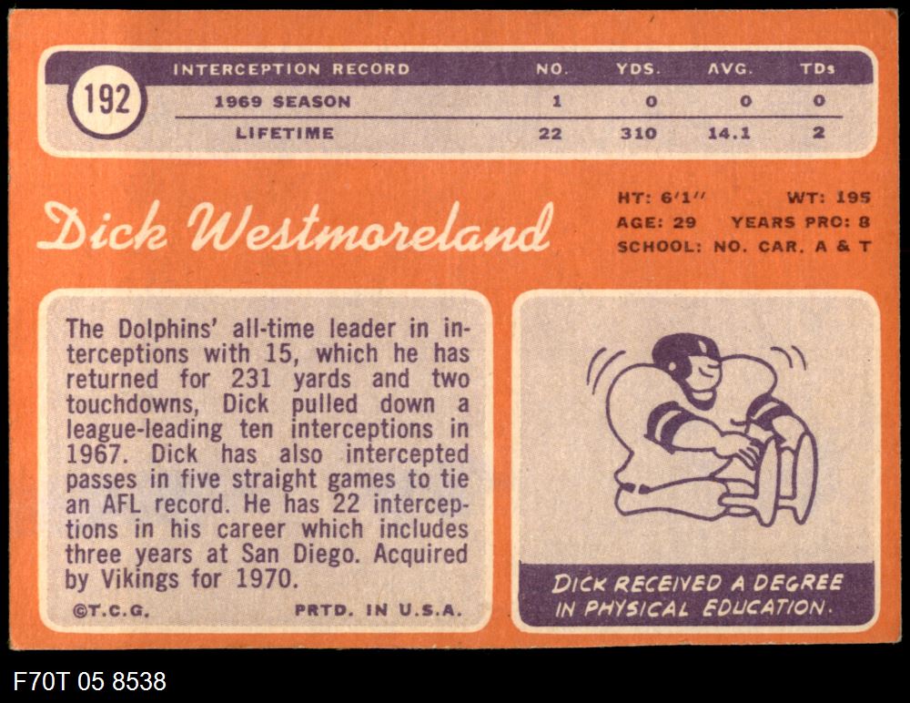 | 1970 Topps #192 Dick Westmoreland | 5 - EX | Front | Back |