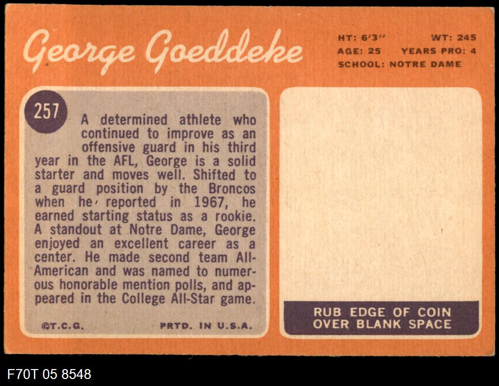 | 1970 Topps #257 George Goeddeke | 4 - VG/EX | Front | Back |