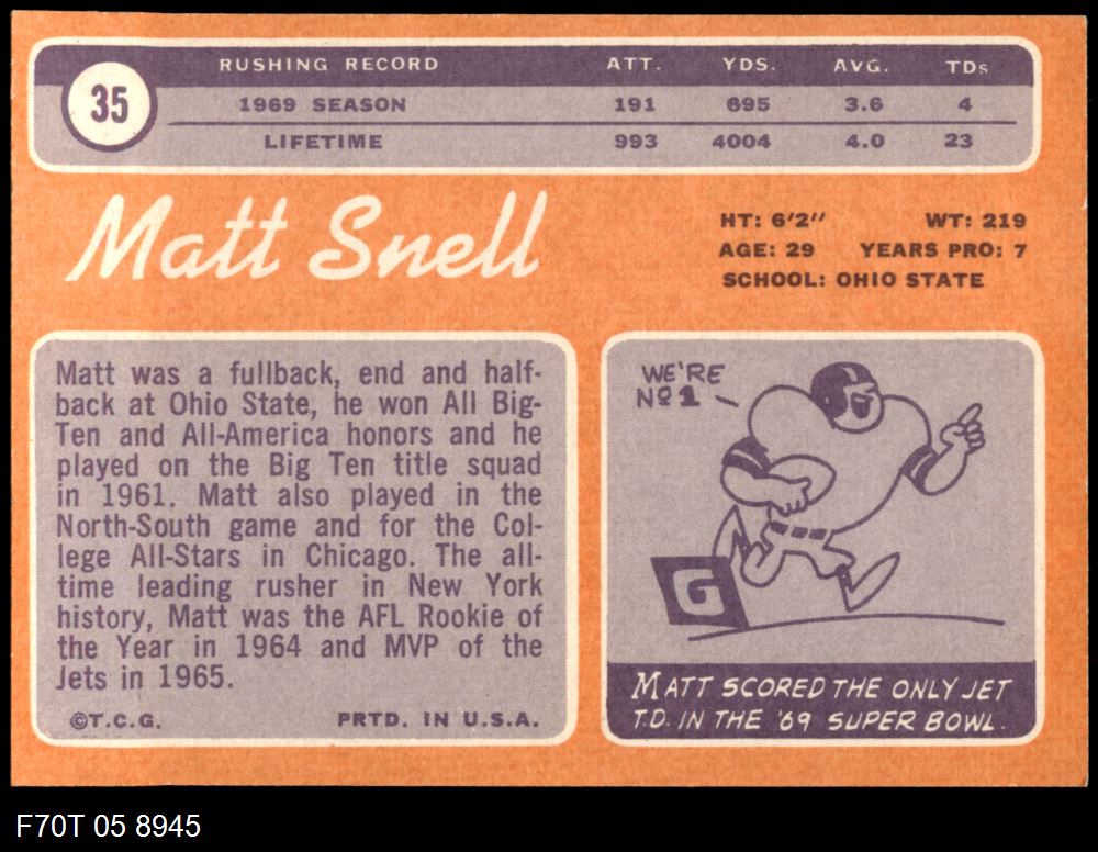 | 1970 Topps #35 Matt Snell | 6 - EX/MT | Front | Back |