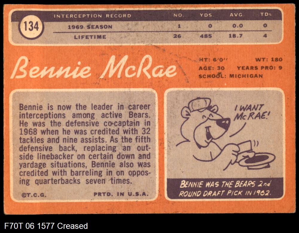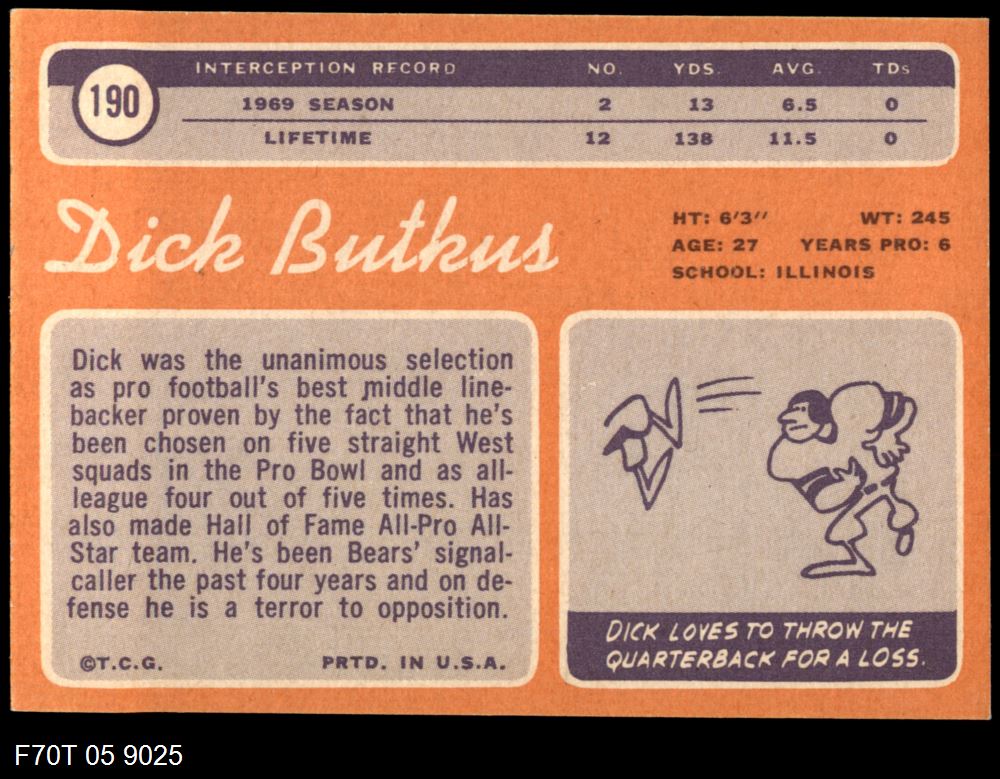 | 1970 Topps #190 Dick Butkus | 5 - EX | Front | Back |