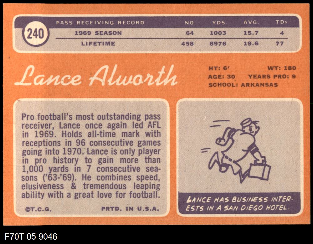 | 1970 Topps #240 Lance Alworth | 5 - EX | Front | Back |