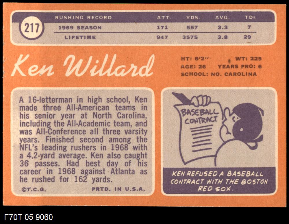 | 1970 Topps #217 Ken Willard | 5 - EX | Front | Back |