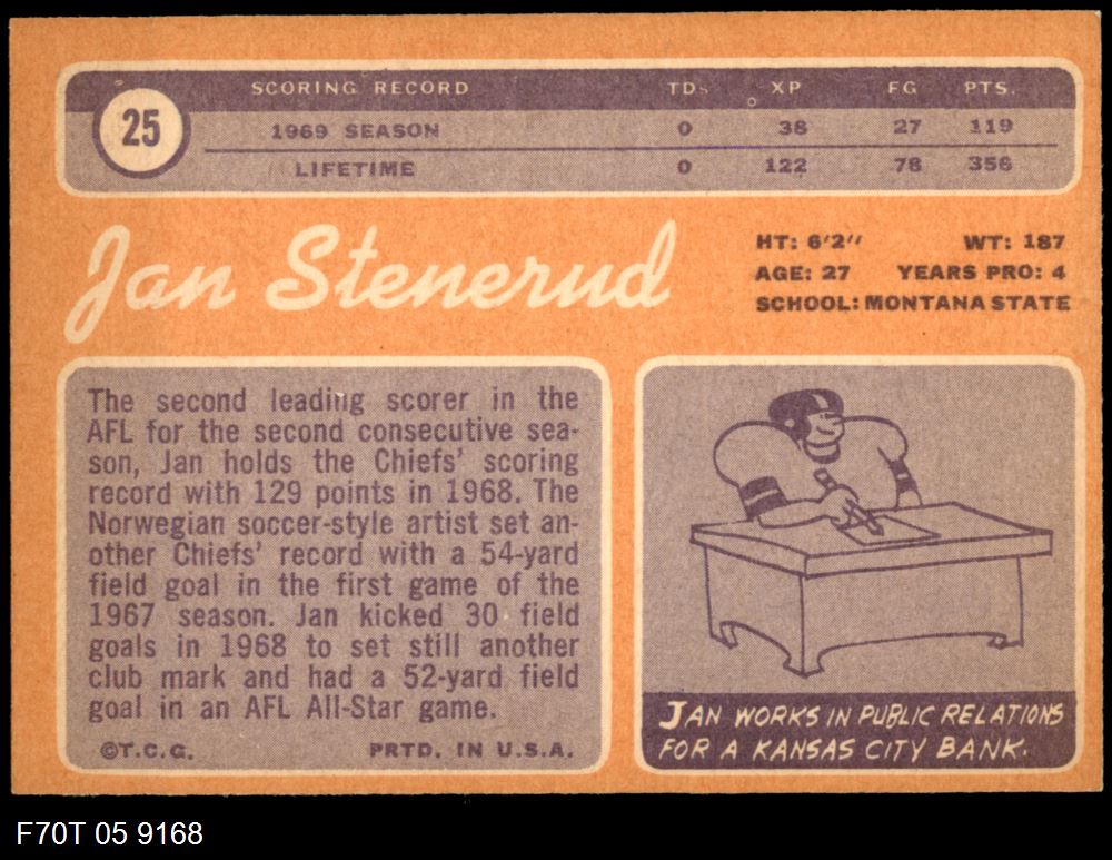 | 1970 Topps #25 Jan Stenerud | 5 - EX | Front | Back |