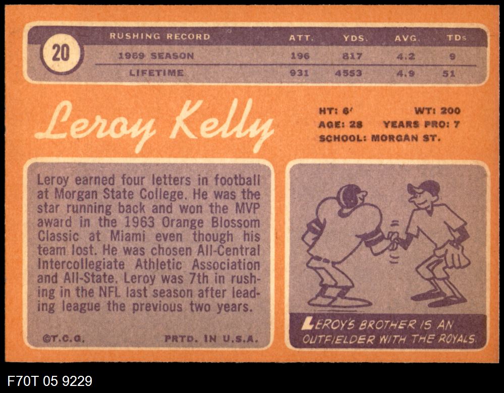 | 1970 Topps #20 Leroy Kelly | 5 - EX | Front | Back |