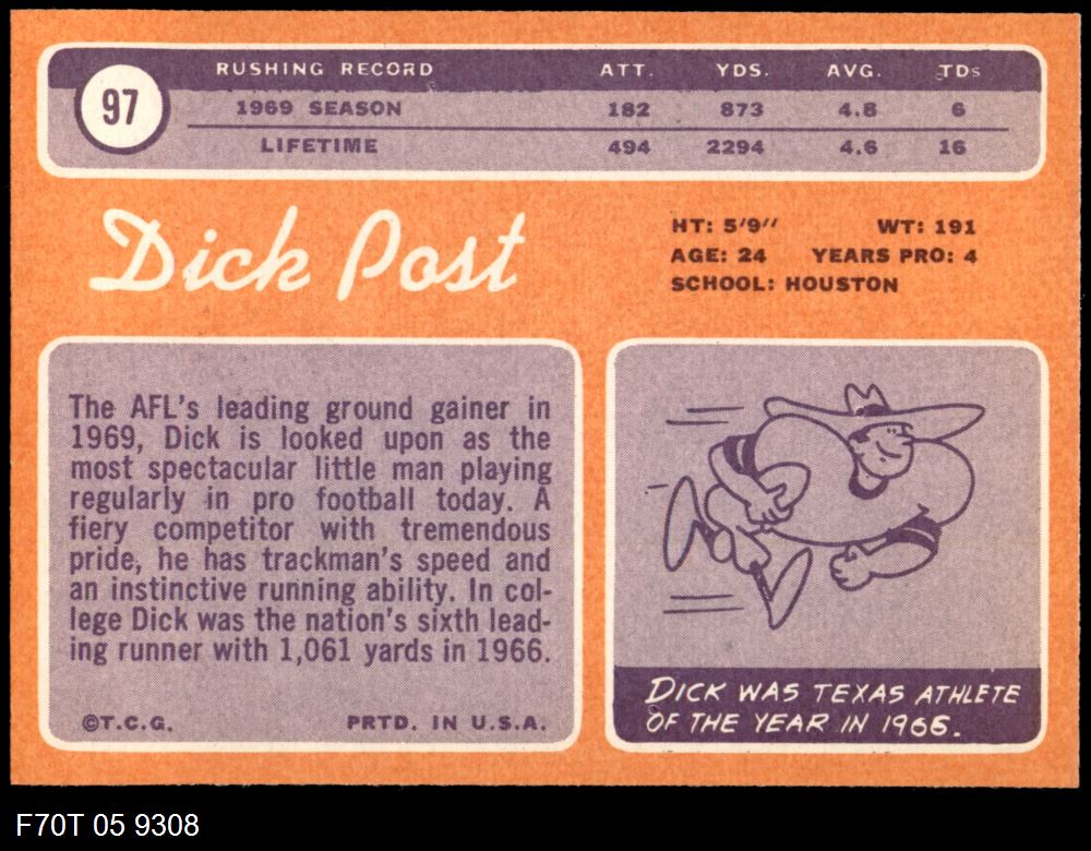 | 1970 Topps #97 Dick Post | 5.5 - EX+ | Front | Back |