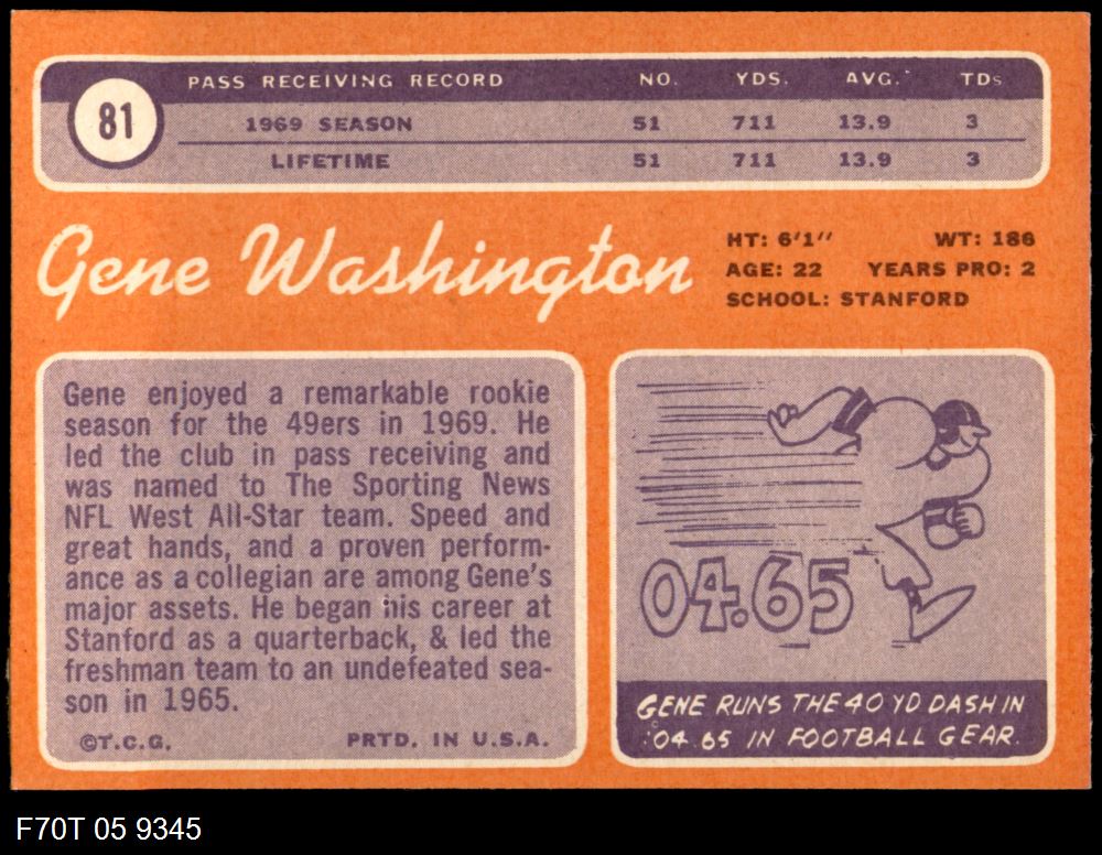 | 1970 Topps #81 Gene Washington | 6 - EX/MT | Front | Back |