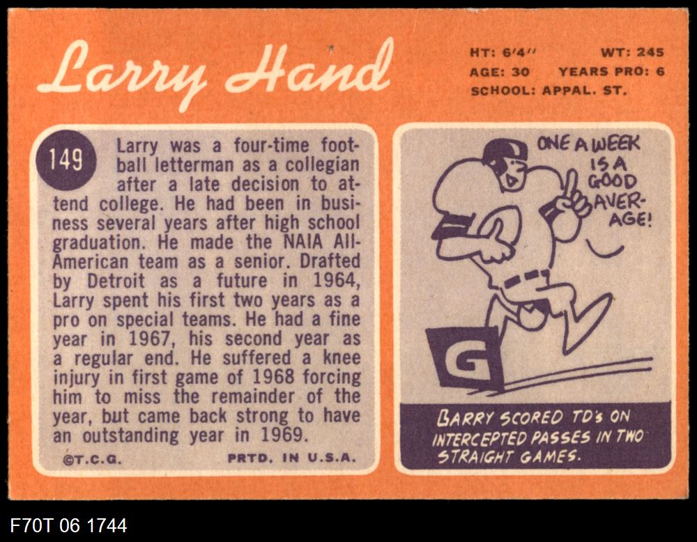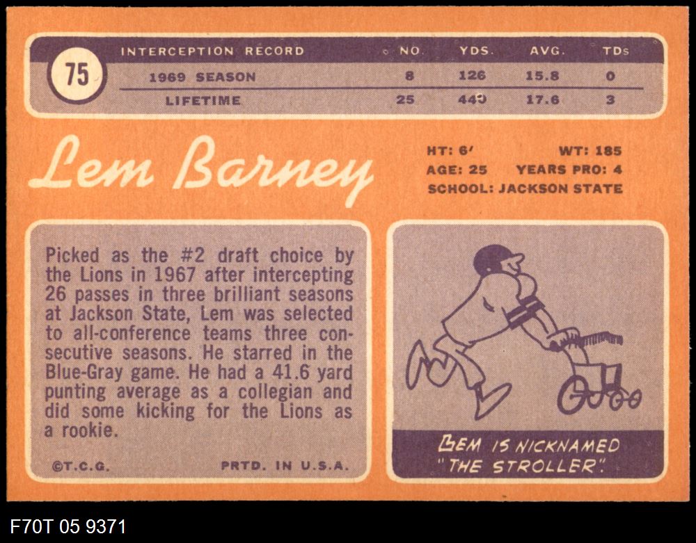 | 1970 Topps #75 Lem Barney | 5 - EX | Front | Back |