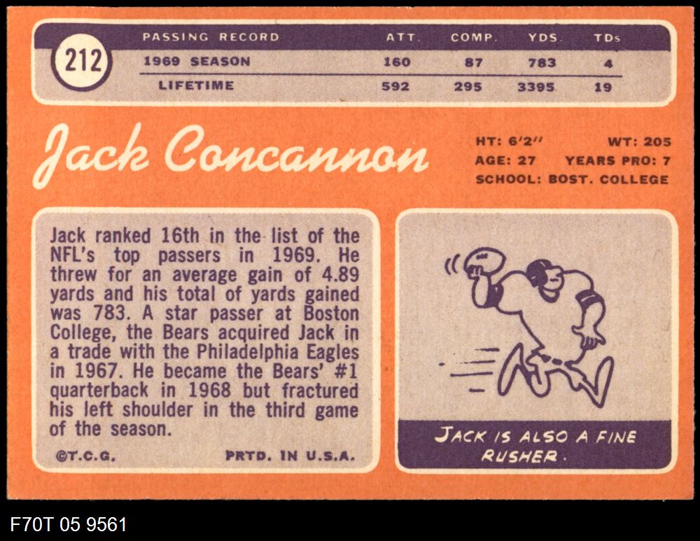 | 1970 Topps #212 Jack Concannon | 5 - EX | Front | Back |