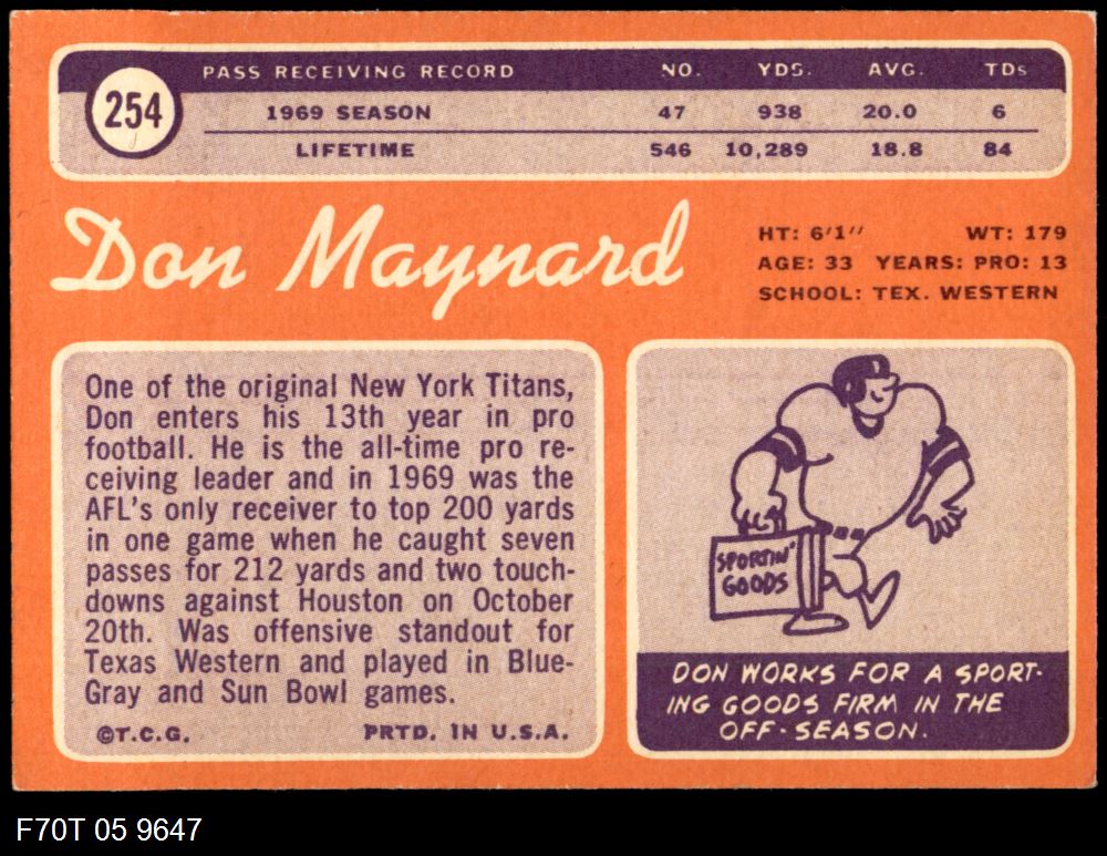 | 1970 Topps #254 Don Maynard | 4 - VG/EX | Front | Back |