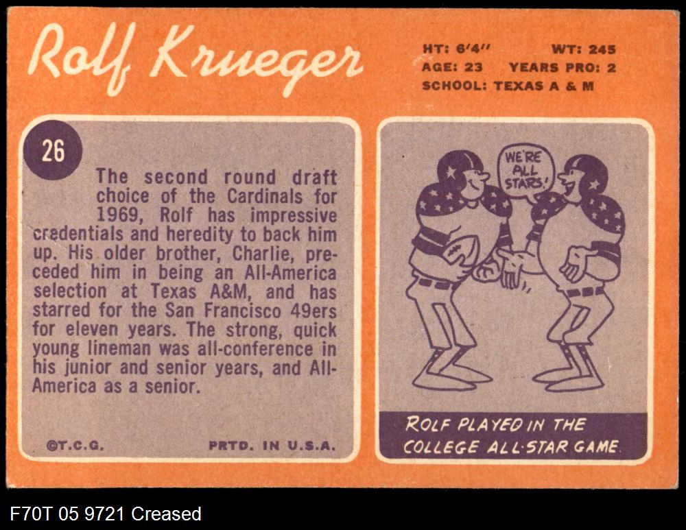 | 1970 Topps #26 Rolf Krueger | 3 - VG | Front | Back |