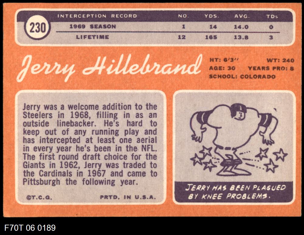 | 1970 Topps #230 Jerry Hillebrand | 5 - EX | Front | Back |