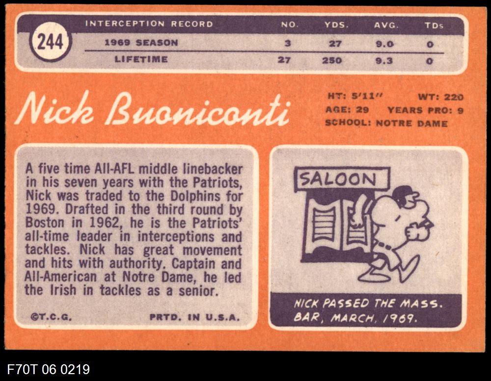 | 1970 Topps #244 Nick Buoniconti | 5 - EX | Front | Back |