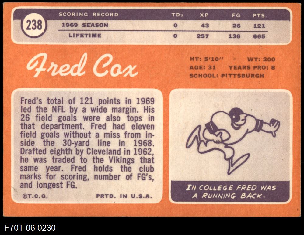 | 1970 Topps #238 Fred Cox | 5 - EX | Front | Back |