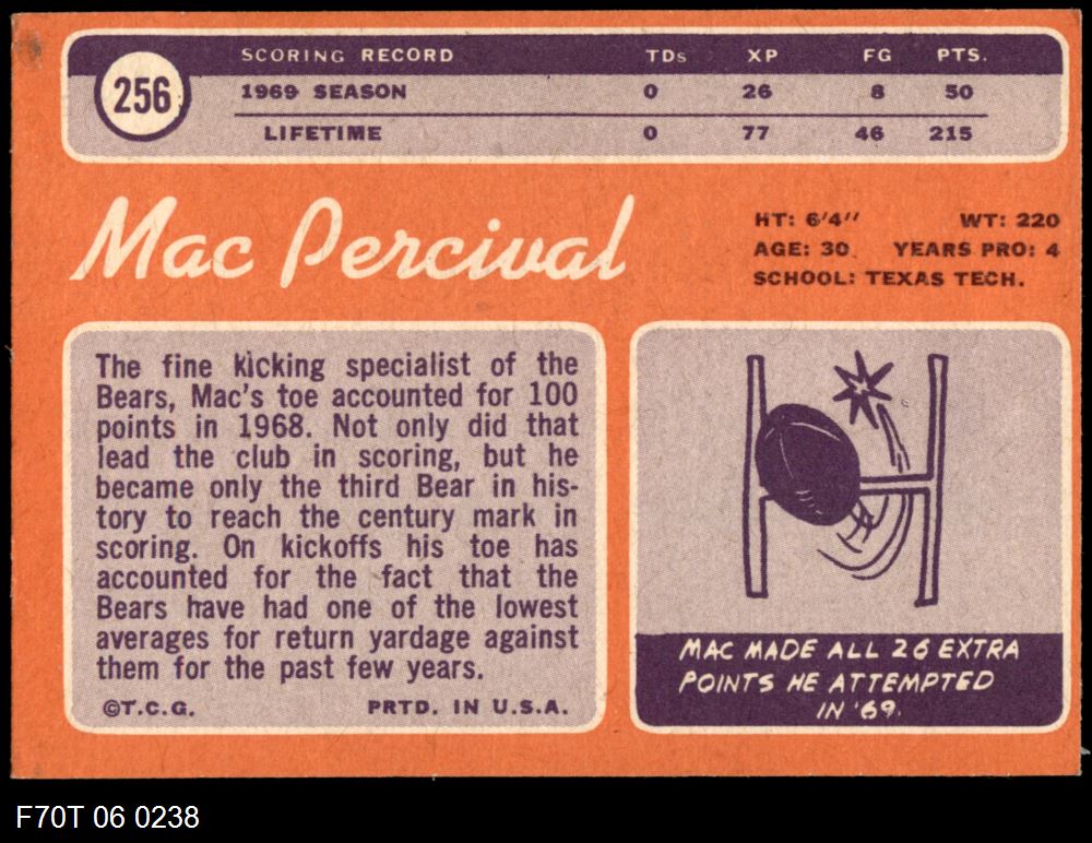 | 1970 Topps #256 Mac Percival | 5 - EX | Front | Back |
