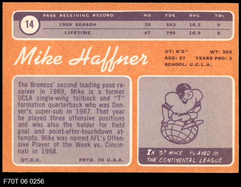 | 1970 Topps #14 Mike Haffner | 4 - VG/EX | Front | Back |