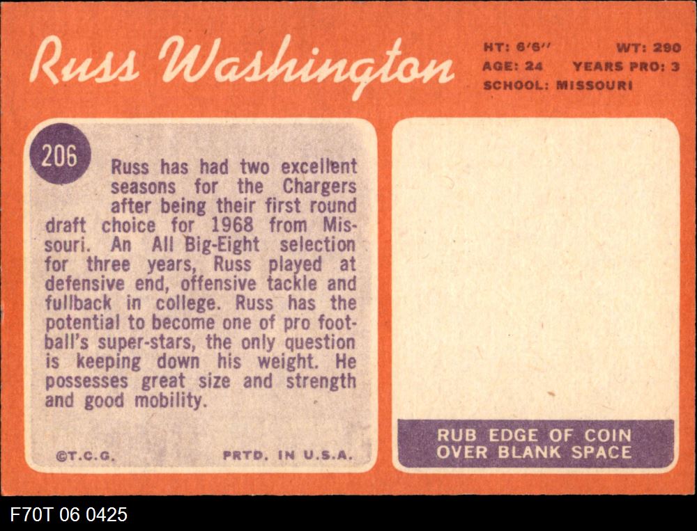 | 1970 Topps #206 Russ Washington | 5 - EX | Front | Back |