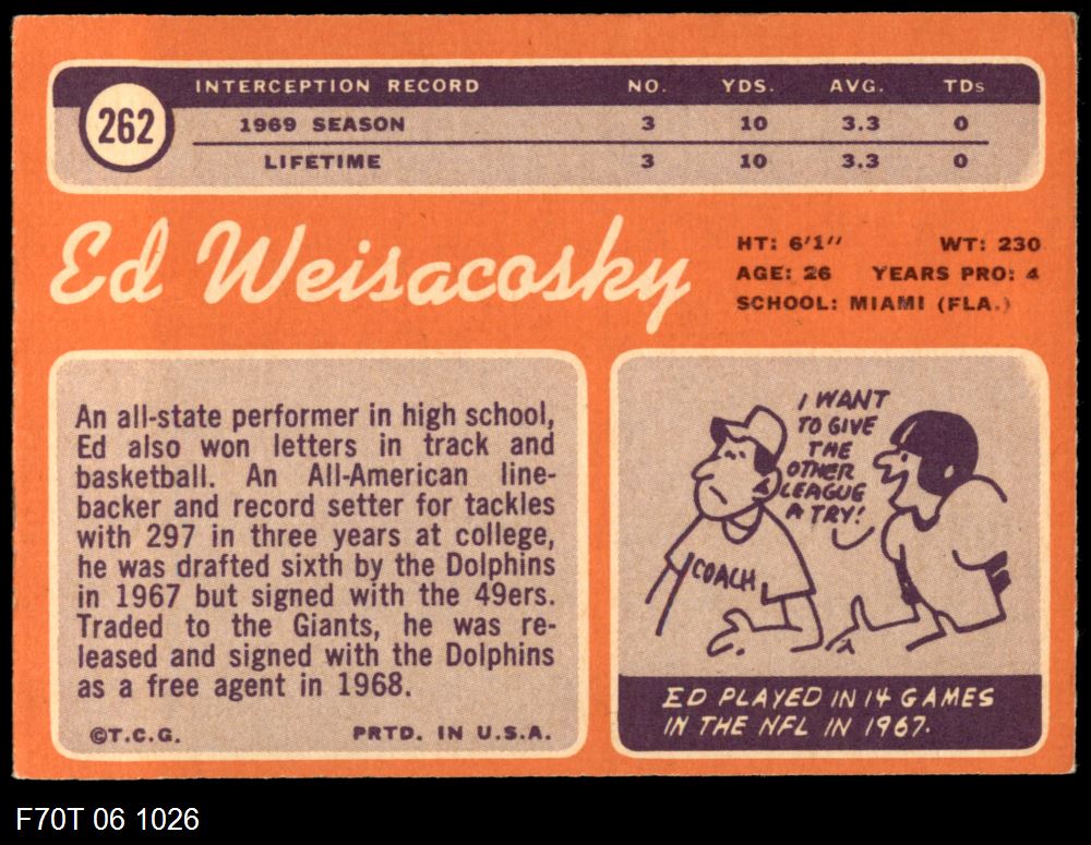 | 1970 Topps #262 Ed Weisacosky | 5 - EX | Front | Back |