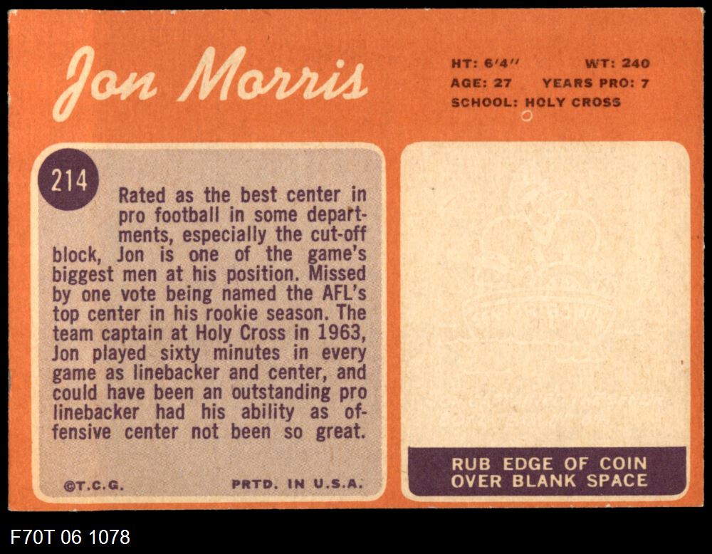 | 1970 Topps #214 Jon Morris | 5 - EX | Front | Back |