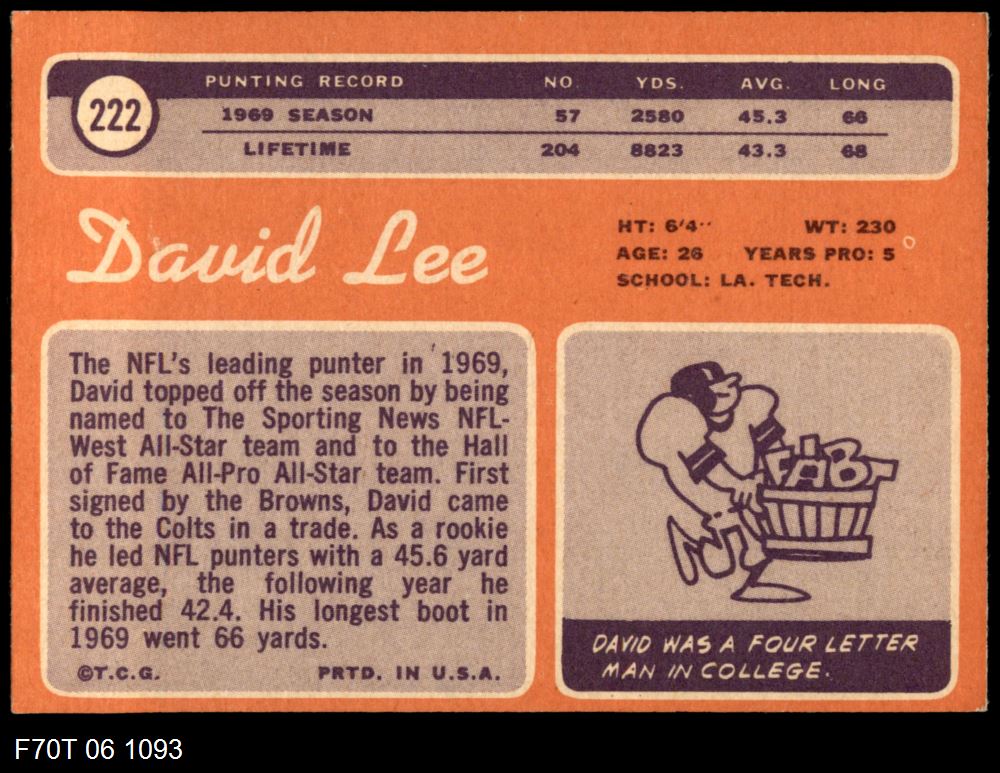 | 1970 Topps #222 David Lee | 5 - EX | Front | Back |