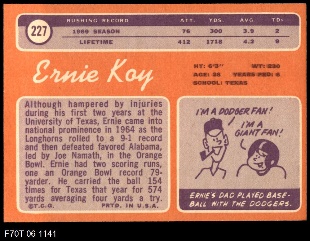 | 1970 Topps #227 Ernie Koy | 5 - EX | Front | Back |