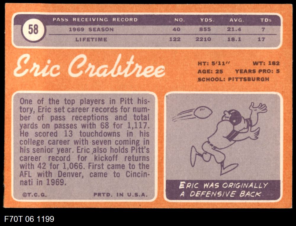 | 1970 Topps #58 Eric Crabtree | 5 - EX | Front | Back |