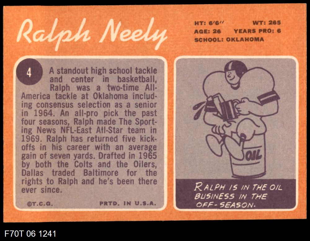 | 1970 Topps #4 Ralph Neely | 5 - EX | Front | Back |