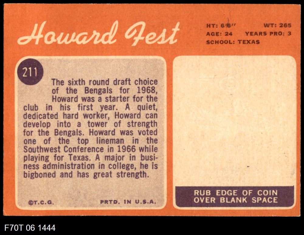 | 1970 Topps #211 Howard Fest | 5 - EX | Front | Back |