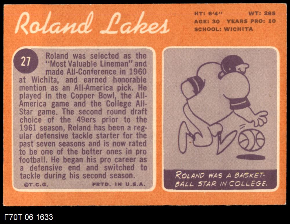 | 1970 Topps #27 Roland Lakes | 3 - VG | Front | Back |