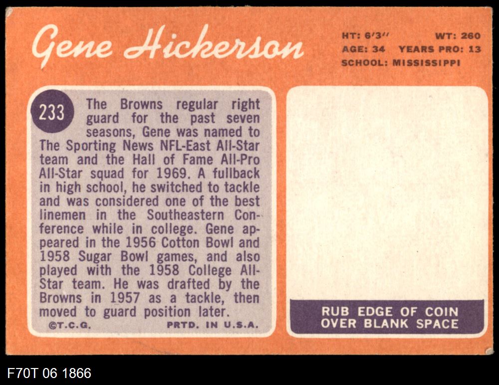 | 1970 Topps #233 Gene Hickerson | 5 - EX | Front | Back |