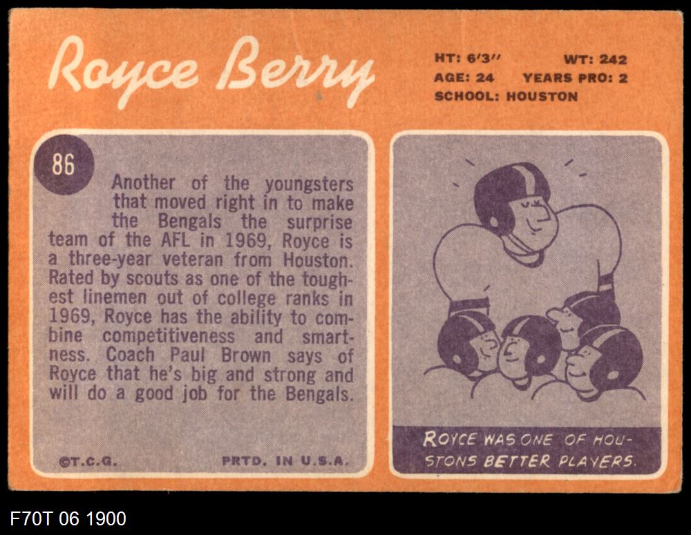 | 1970 Topps #86 Royce Berry | 3 - VG | Front | Back |