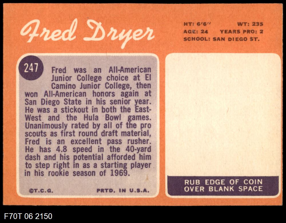| 1970 Topps #247 Fred Dryer | 5 - EX | Front | Back |
