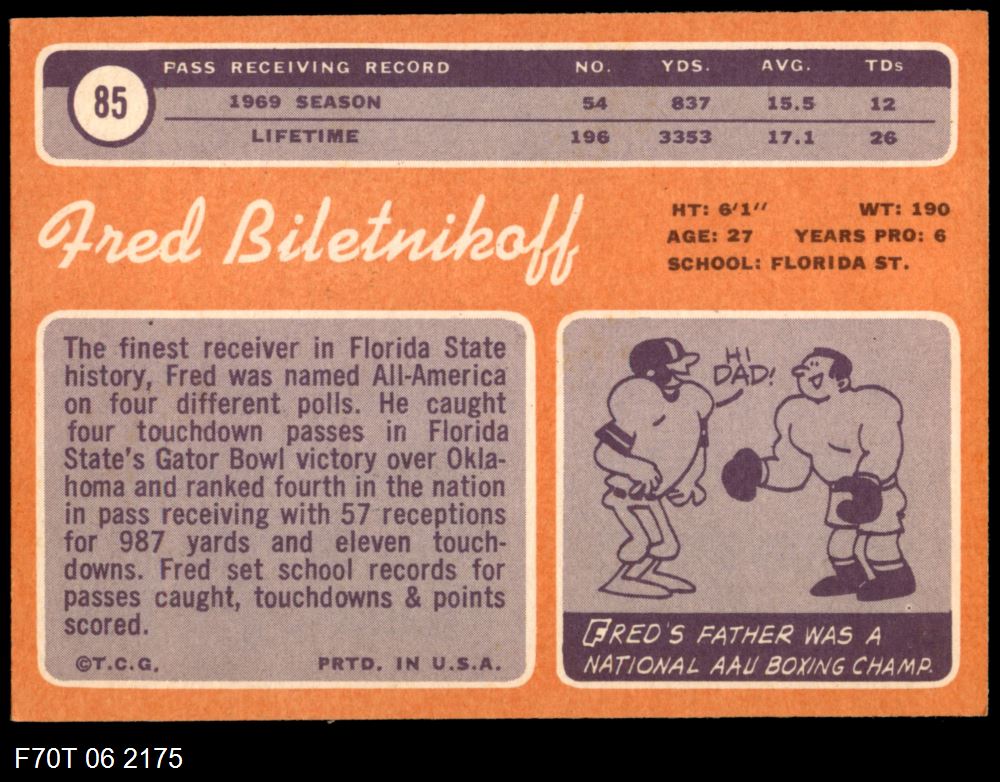 | 1970 Topps #85 Fred Biletnikoff | 6 - EX/MT | Front | Back |